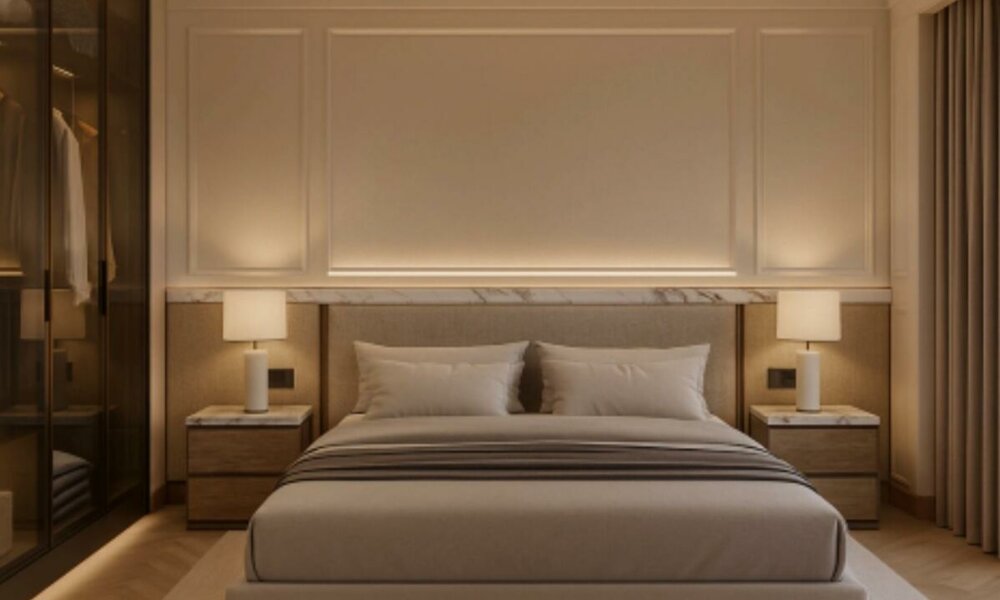 Appartement d’une chambre de 89 m², entièrement rénové dans un style moderne et raffiné. Les finitions en béton ciré, l’éclairage indirect et les lignes épurées créent une atmosphère élégante et contemporaine. La chambre offre une ambiance chaleureuse avec un éclairage intégré et un design sur mesure. La salle de bain offre un confort haut de gamme avec sa douche à l’italienne et sa double vasque. L’espace de vie lumineux et spacieux s’ouvre sur un balcon avec vue sur Pal Jumeirah et la mer. Située dans le quartier animé et recherché de Dubaï Marina, cette propriété allie parfaitement esthétique et fort potentiel locatif, au sein d’une résidence emblématique.